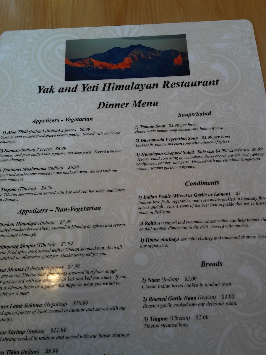 Overall, Yak & Yeti Himalayan Restaurant offers an extensive menu that caters to all tastes, ensuring an enjoyable dining experience that highlights the richness of Himalayan flavors.
